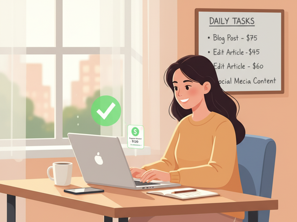 These jobs don’t replace a full-time income, but they’re perfect for people who want quick, low-stress money on demand. With consistent effort, many freelancers earn $20–$50 daily, working in small pockets of free time.